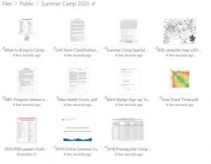 • Troop OneDrive space “Summer Camp 2020”. https://link.bsa179.org/files
